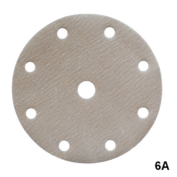Yuvarlak titreşimli zımpara makinesi ile, kuru. Sütlü kahve. Ø 150 mm 7 delik. Ø 150 mm 8+1 delik.
