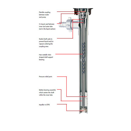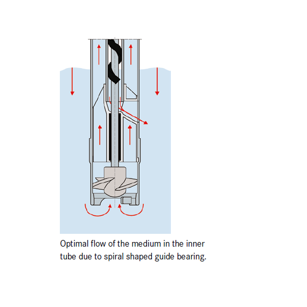 Sıvı tarafından yağlanmış iç boru, pompa mili tarafından desteklenir.