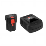 LED göstergeli lityum iyon pil hücreleri (18V 2.5Ah), bir düğmeye basarak şarj seviyesini gösterir. Tam şarj, 35 ila 45 dakika arasında sürekli çalışma süresi sağlar.